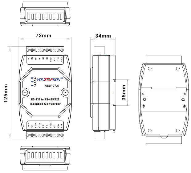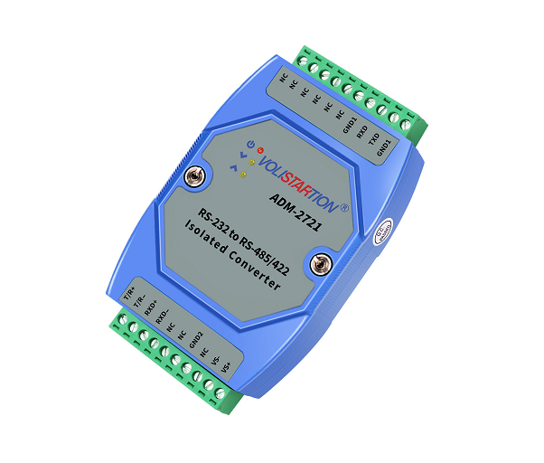 ADM-2721是一款专为工业自动化通信中,解决RS-232接口信号转换成RS-485/422信号的光电隔离型转换器,支持传输速率最高达115.2Kbps,RS-485接口端采用光电隔离技术,内置三端全隔离,RS-232、RS-485/422及电源相互隔离,600W 防雷浪涌保护电路,提供1500V 的隔离电压可以有效地抑制闪电和ESD保护。RS-485工作模式采用的判别电路能够自动感知数据流方向,并且自动的切换使能控制电路,轻松解决 RS-485 收发转换时延问题。RS-485 接口传输距离大于 1000 米、性能稳定。广泛用于高速公路收费系统,道路监控系统及电力采集系统中,是一款性能卓越,价格优良的数据接口转换产品。