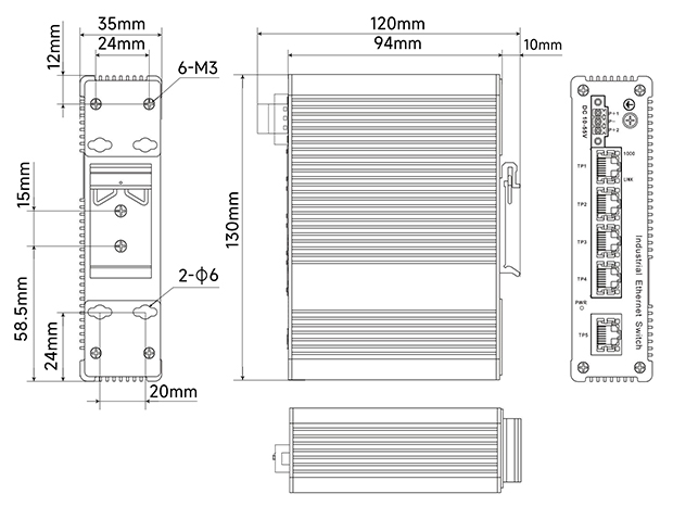 1、提供5个10/100/1000Base-T (X) 自适应RJ45端口
