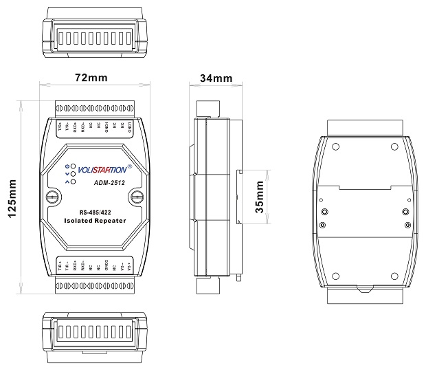 ADM-2512 is a RS-422/485 repeater with photoelectric isolation protection. It can increase RS-422/485 transmission distance and RS-422/485 signal isolation protection, industrial application design, DIN guide installation, DC24V power supply. It is suitable for harsh industrial environment.
