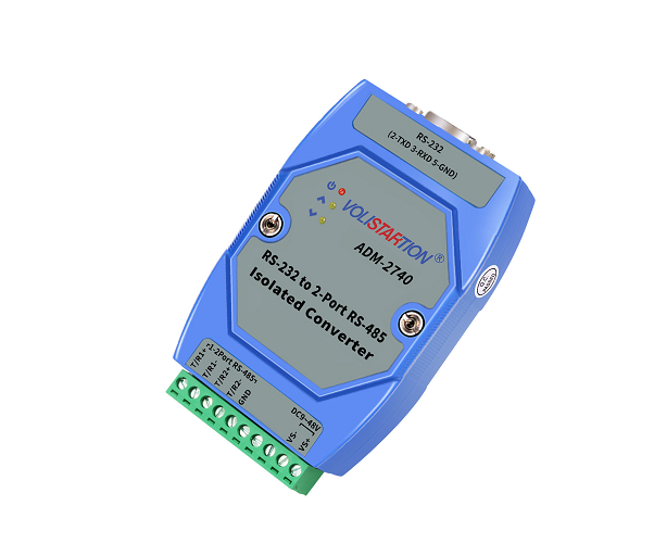 ADM-2740是一款专为工业自动化通信中,解决RS-232接口信号转换成RS-485信号的光电隔离型转换器;支持RS-232转2路RS-485,RS-232口可接主站,2个RS-485口可接从多个从站。ADM-2740支持传输速率最高达115.2Kbps,RS-485接口端采用光电隔离技术,600W 防雷浪涌保护电路,提供1.5KV 的隔离电压可以有效地抑制闪电和ESD保护。RS-485工作模式采用的判别电路能够自动感知数据流方向,并且自动的切换使能控制电路,轻松解决 RS-485 收发转换时延问题。RS-485 接口传输距离大于 1000 米、性能稳定。广泛用于高速公路收费系统,道路监控系统及电力采集系统中,是一款性能卓越,价格优良的数据接口转换产品。